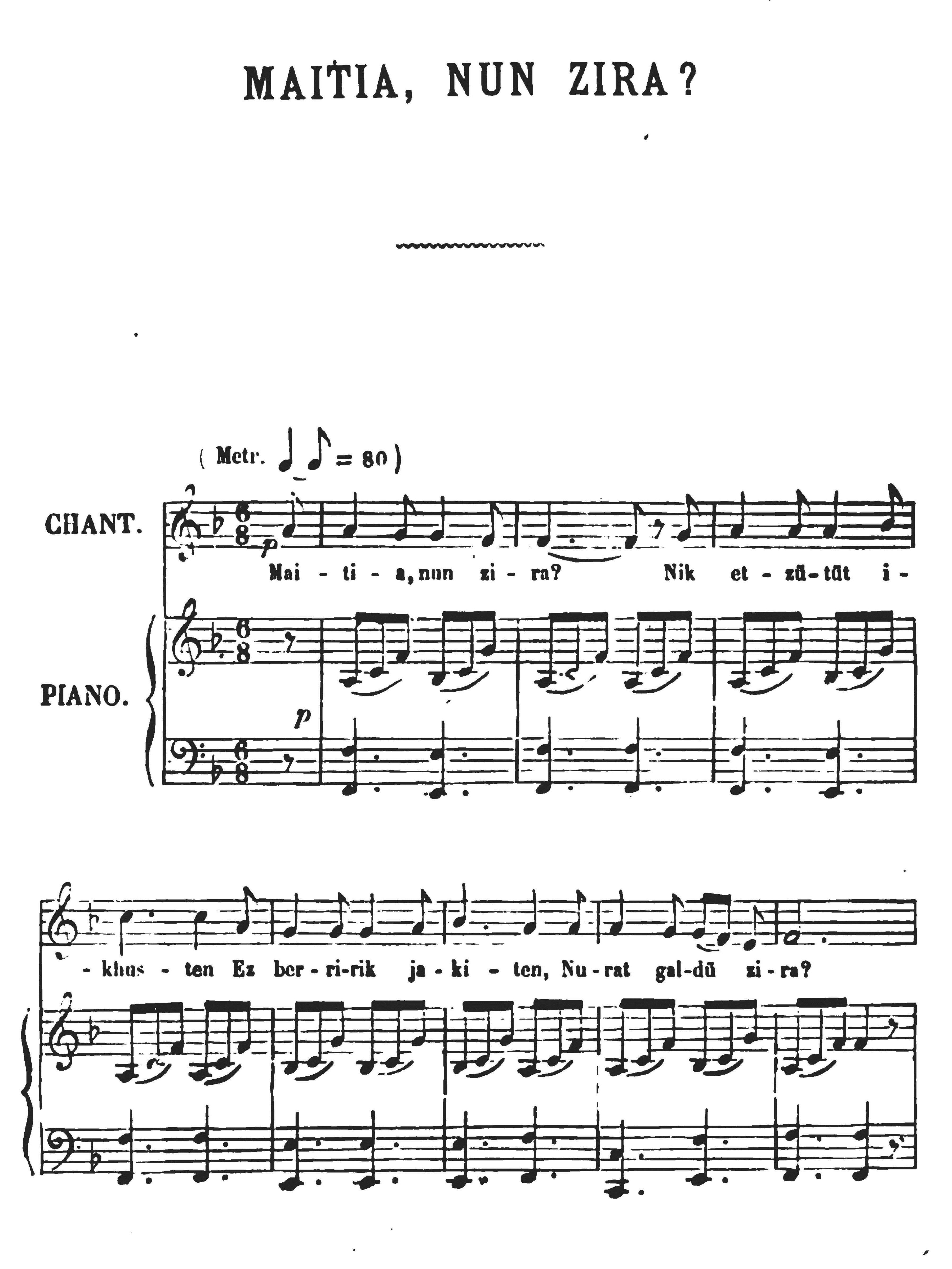 • Maïtia nun zira: folklore basque; Barda aratzian: folklore basque (c. 1949), del barítono francés Jean Borthayre.